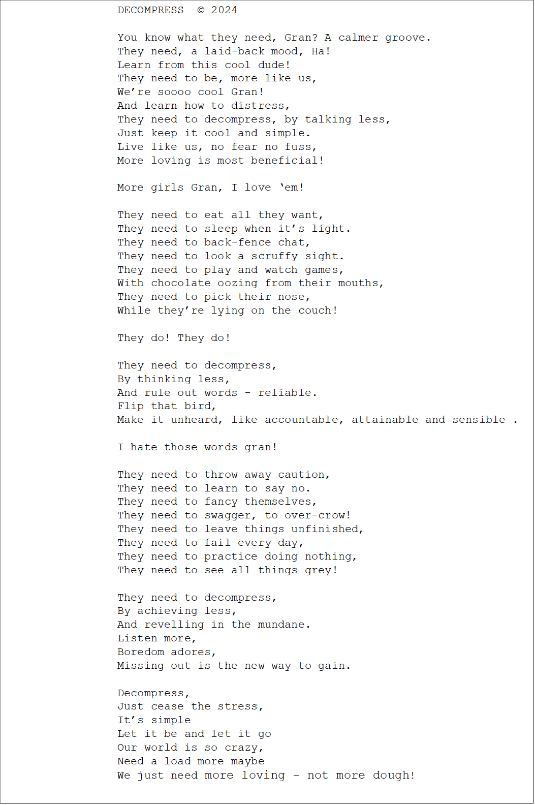 Decompress is composed by Tomas Barrios from Argentina and sung by the creative Jarrad Green from the USA.